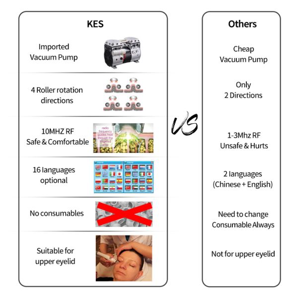 This Vela Shape Machine is a brand-name product from KES, with model number MED-360. It is produced in Beijing, China, and has been CE Cleared for safety. Its electrical requirements are 220V/110V+10%50/60Hz, and it can work continuously for up to 18 hours per day. Its pump suction rate is 25cubm/h.